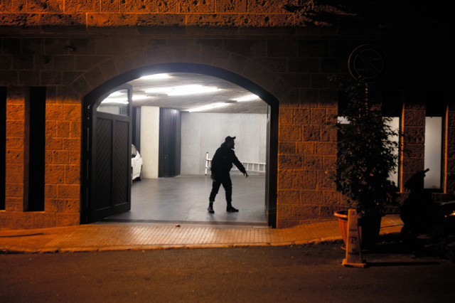 レバノンの首都ベイルートで30日、カルロス・ゴーン被告の自宅車庫に立つ警備員=AP